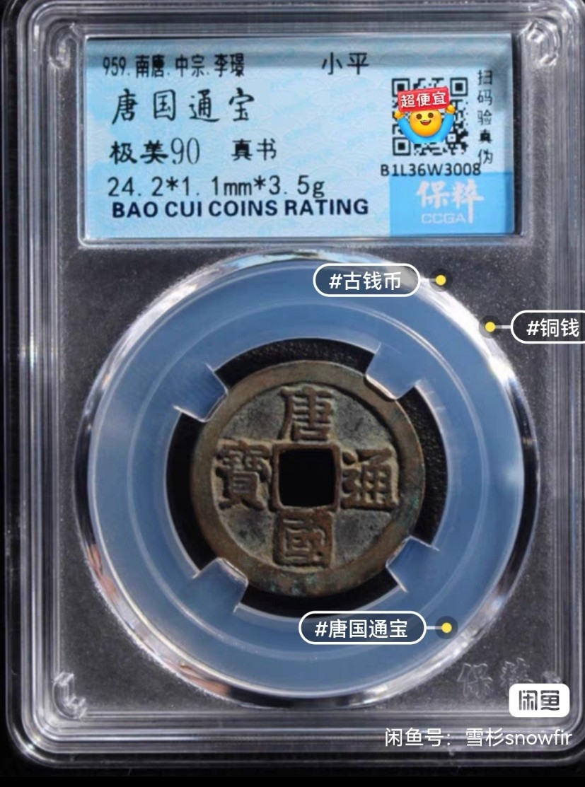 唐国通宝古钱币一枚 真书版的 保粹评级90分的盒子币放心购买保真包老